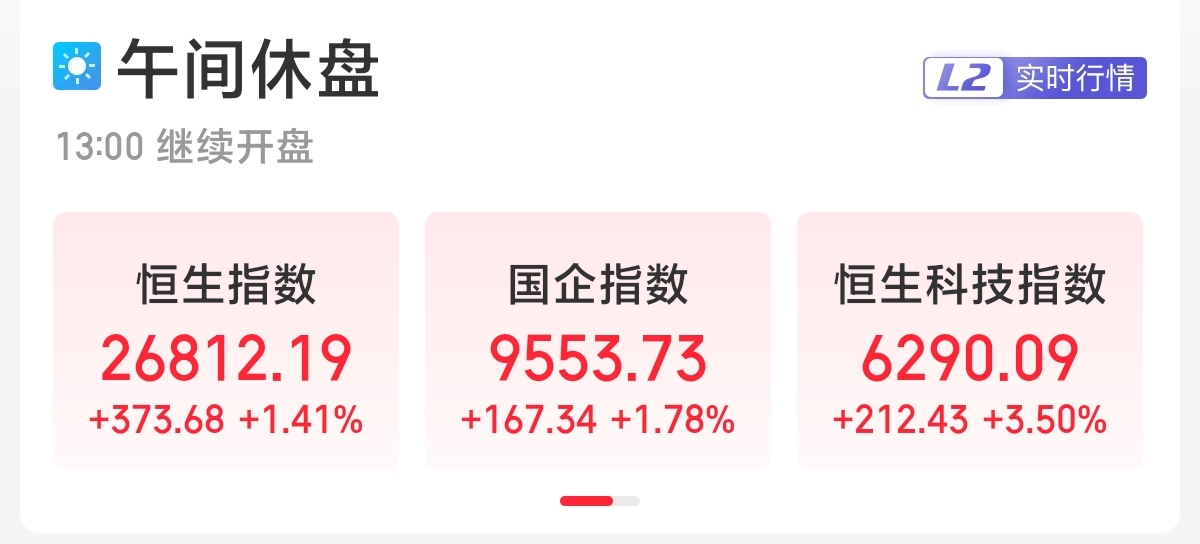 中新经纬9月17日电 周三早盘,港股三大指数集体上涨。截至午间收盘,恒生指数上涨1.41%我要配资网,恒生科技指数涨3.5%,恒生中国企业指数涨1.78%。市场半日成交额为1924亿港元。