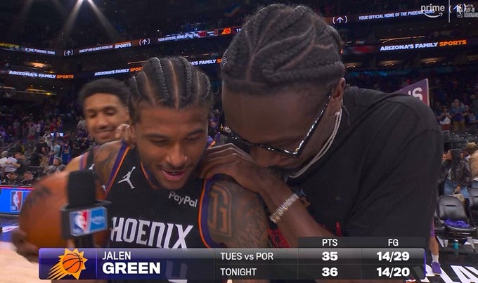 4月18日讯 NBA附加赛,太阳111-96击败勇士,杰伦·格林打出生涯代表作,8个三分平附加赛球员单场历史纪录。