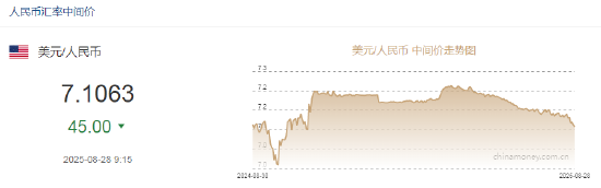8月28日配资APP排名,人民币兑美元中间价较上日调升45点至7.1063,中间价升值至2024年11月6日以来最高。