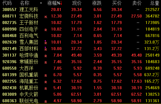 可控核聚变概念盘中强势拉升,截至收盘,理工光科20%涨停,宏微科技涨超12%,王子新材、四创电子、雪人集团等涨停;西部材料涨停,近11个交易日收获6个涨停板。